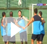 Messi se entretiene con curiosos ejercicios en las prácticas del Barcelona