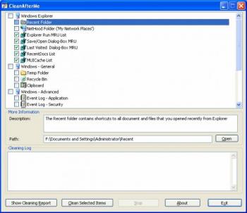 CleanAfterMe Portable 1.11 - Un aporte de - PERE.G.G - CleanAfterMe es un programa para eliminar todo rastro que haya podido dejar tu actividad en un PC.