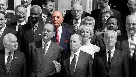 El elegante caballero que posaba detrás de Jacques Chirac y François Miterrand en la celebración del 50 aniversario del final...
